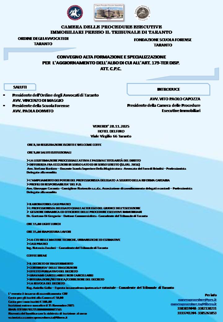 Camere delle Procedure Esecutive Immobiliari presso il Tribunale di Taranto